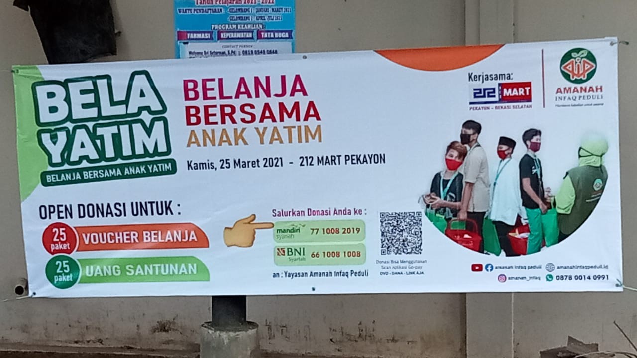 Yayasan Amanah Infaq Peduli yang concern pada anak yatim, telah menyiapkan suatu program sebagai bentuk pembelaan & kepeduliannya, yakni BELA YATIM (belanja bersama anak yatim). Kegiatannya dalam bentuk berbelanja bersama anak yatim untuk paket barang kebutuhannya sehari-hari dan pemberian uang santunannya.