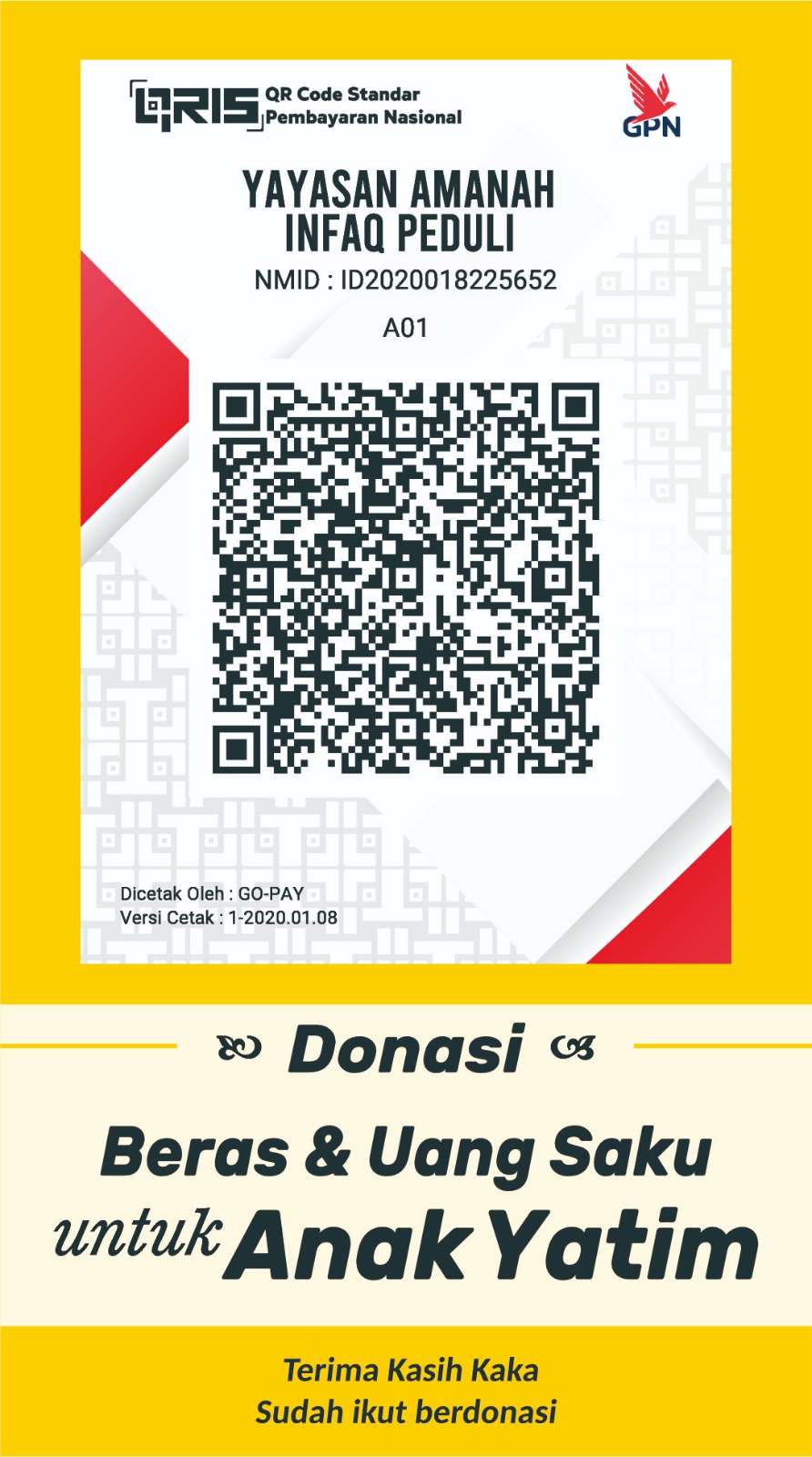 Yayasan Amanah Infaq Peduli sudah kami sampaikan ke Ustadz Reza Sudrajat,